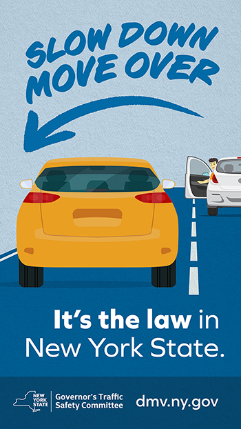 If a driver is unable to switch lanes, he or she is advised to turn on their directional to signal their intent to move over. Additionally, the driver should slow down and drive as carefully as possible around the stopped or disabled vehicle. For more information, visit the Governor’s Traffic Safety Committee at https://trafficsafety.ny.gov/move-over-law.